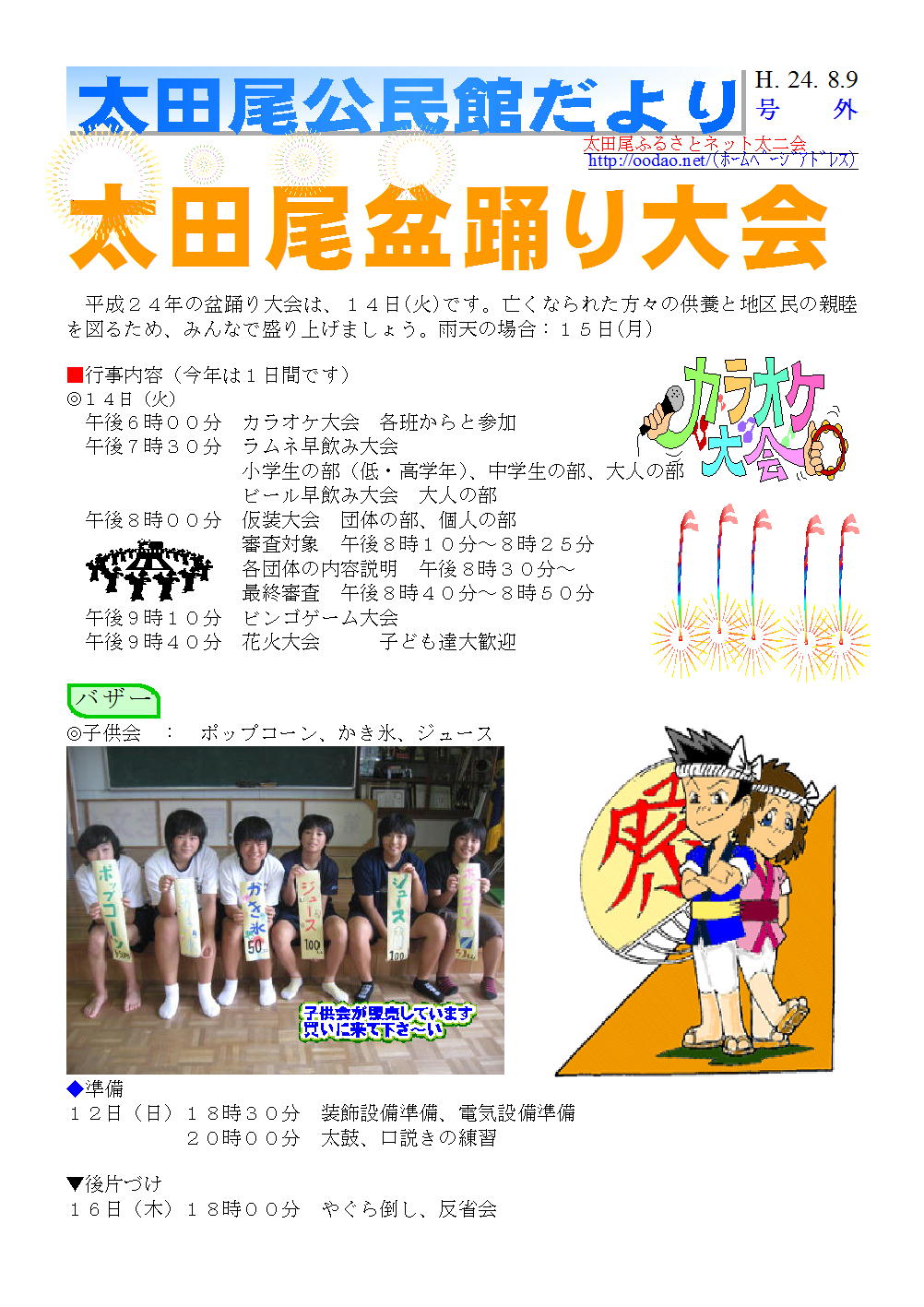 - 太田尾盆踊り大会の結果を掲載しました(H23.8.16)